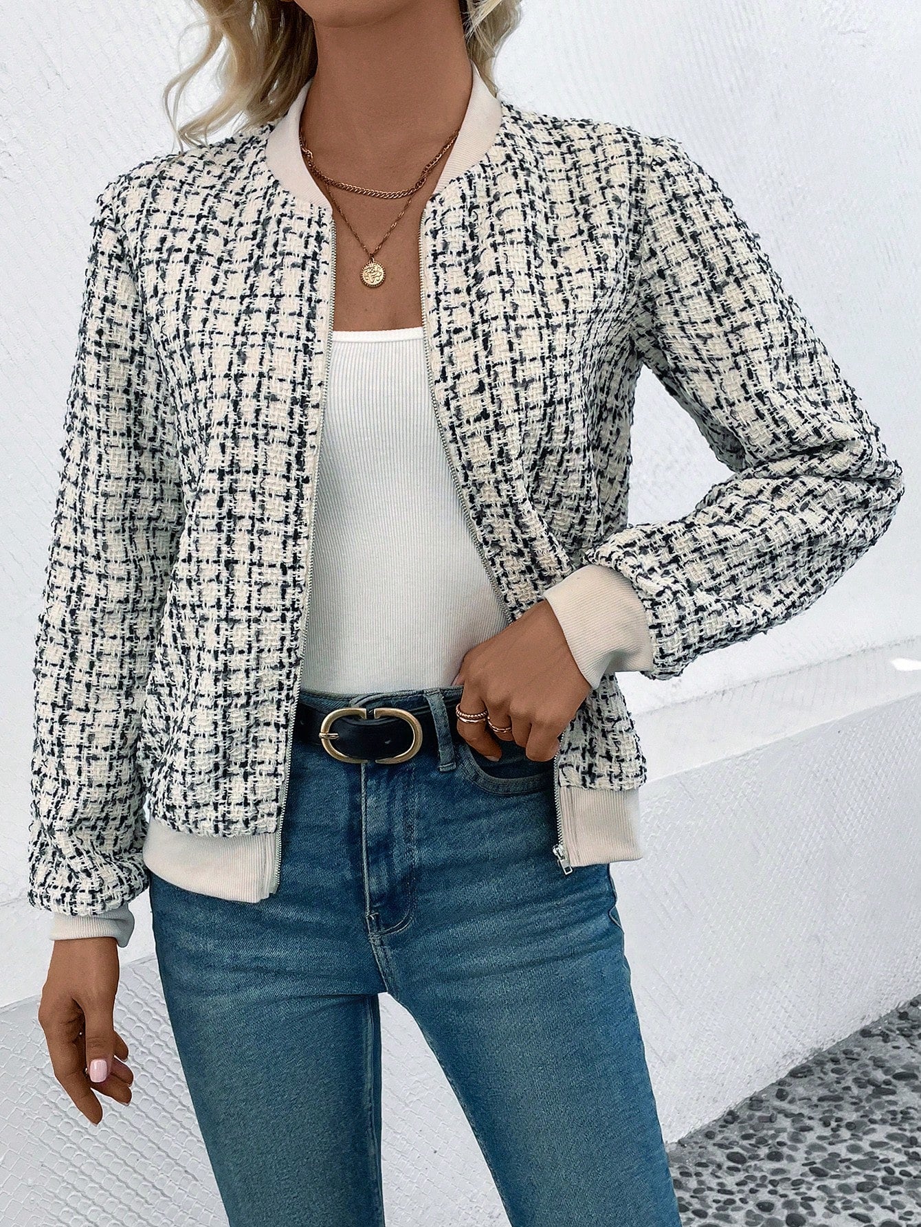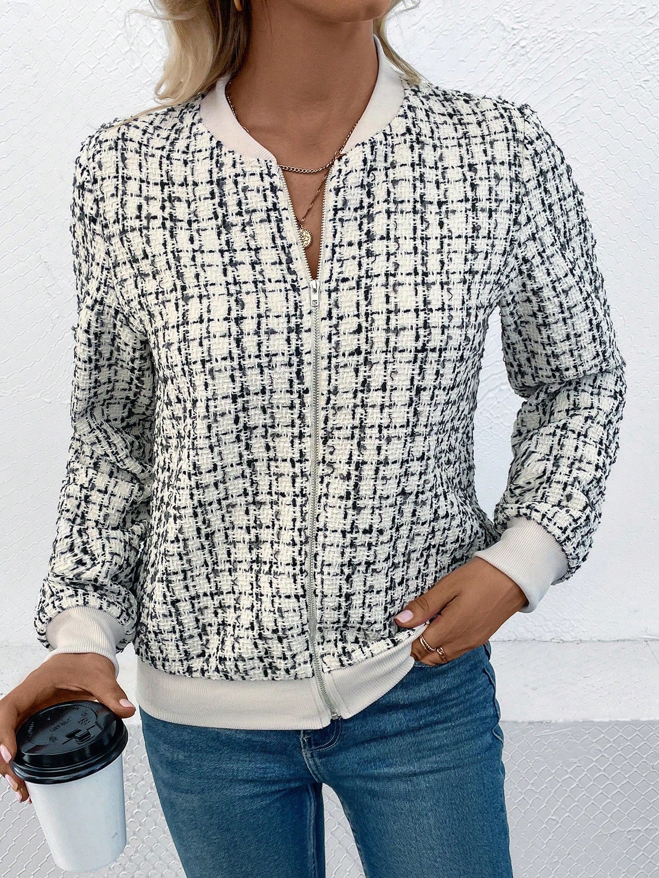 Elegant Rutig Jacka i Tweedstil