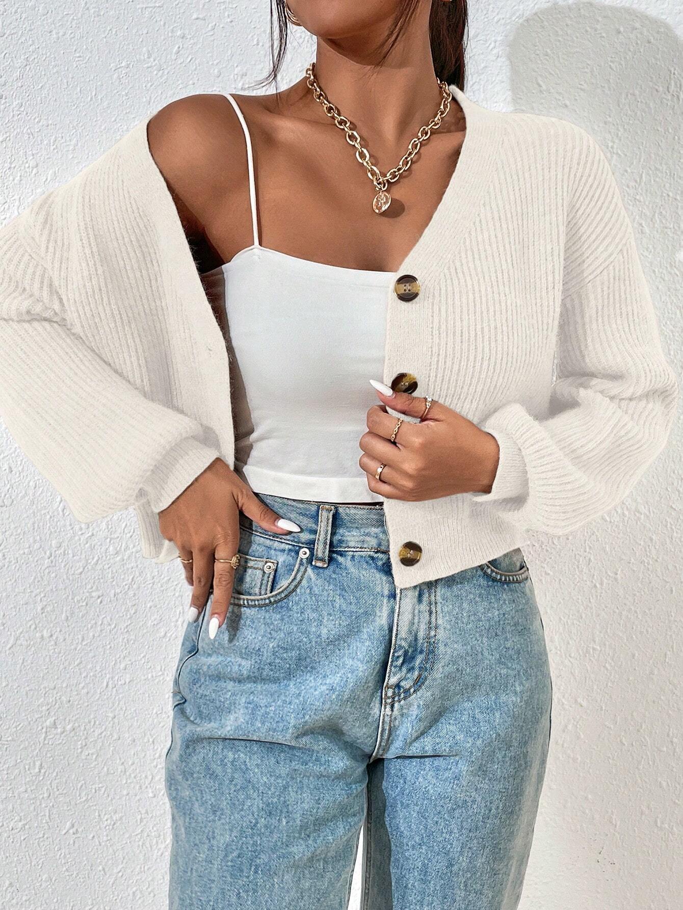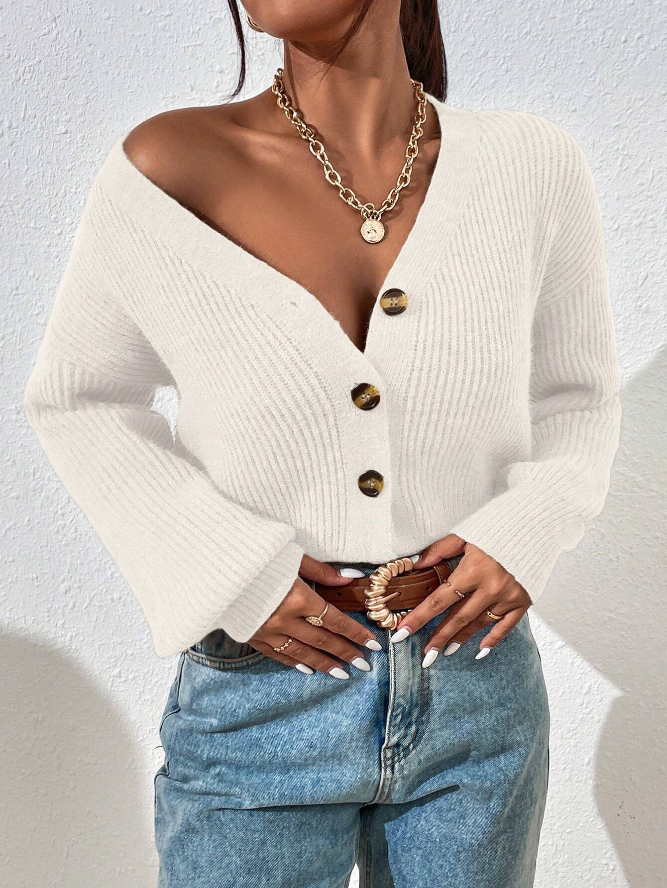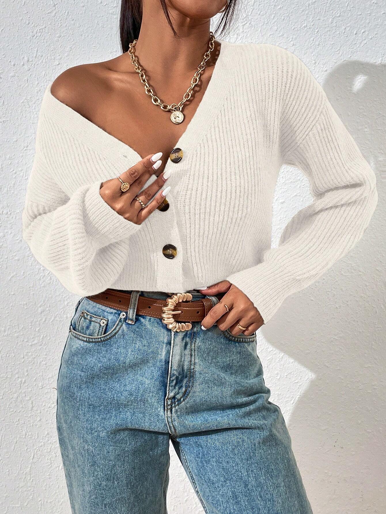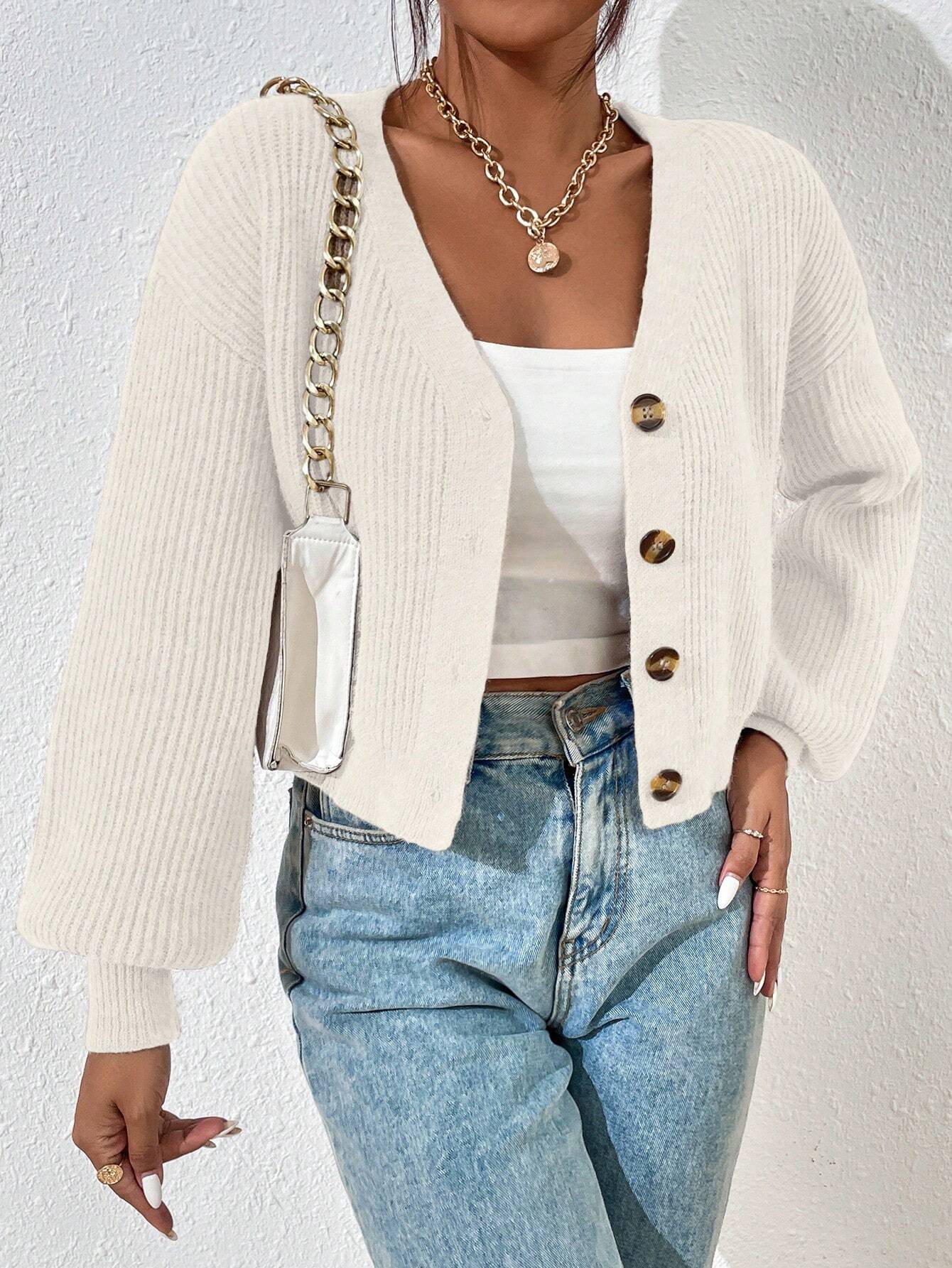 Stickad Vit Kofta med Knappar